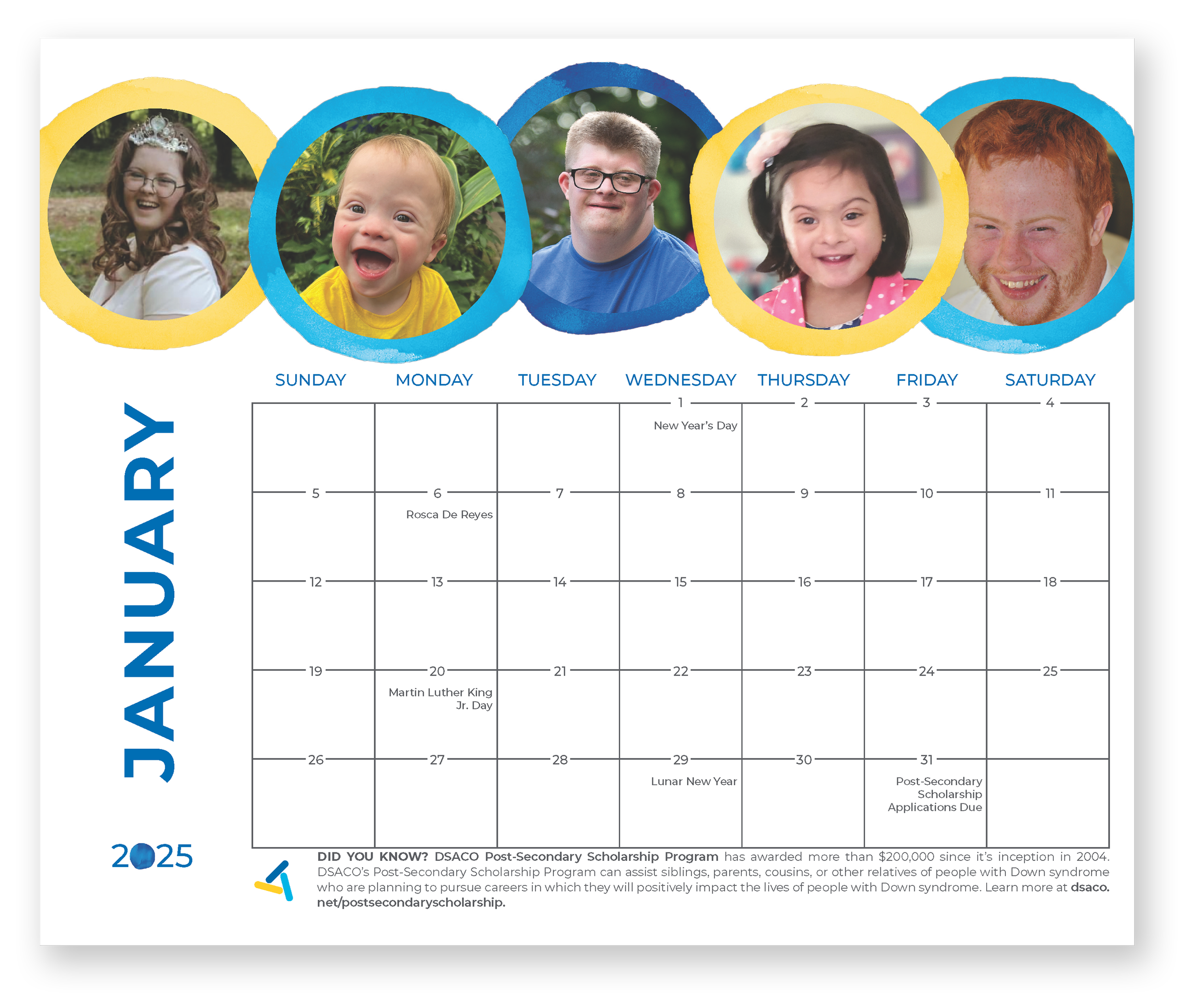 While working as a Graphic Design Intern for the Down Syndrome Association of Central Ohio, I was given full creative control over their largest deliverable of the year: the Faces in the Community Calendar. Every year, families of people with Down syndrome submit their loved ones for this project, a piece that is beloved and purchased by over 200 members with each iteration.